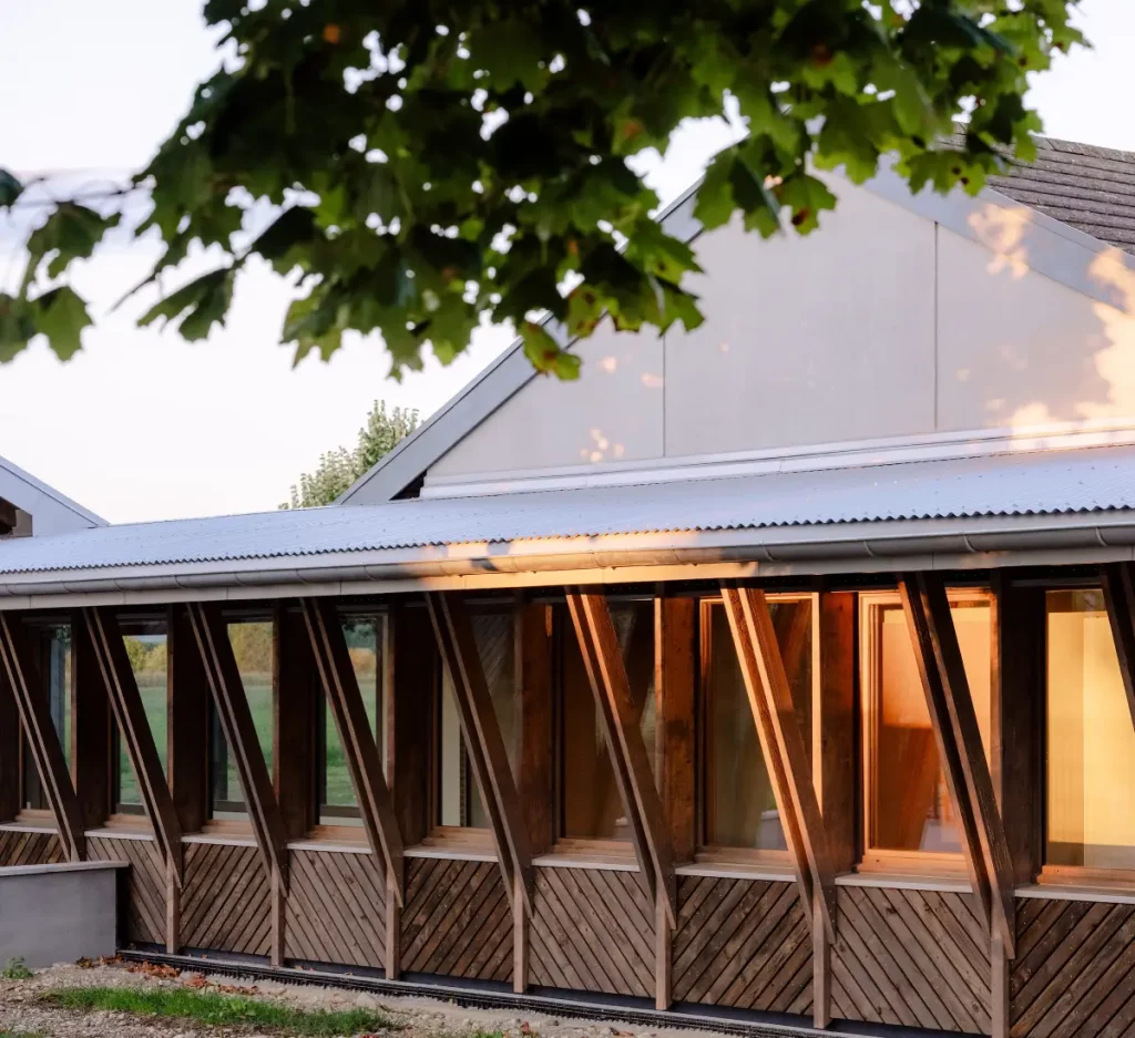 Extension d’un groupe scolaire en ossature bois en site occupé Lieu Saint Hilaire de la Côte (38) Date 2025 Photographe François Baudry Architecte ATELIER 90 Charpentier TAPIO – Hugonnard SAS (38)